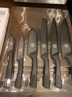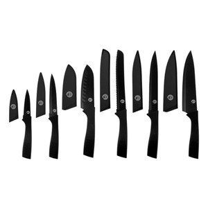 MasterChef 12pc Knife Set with Covers Sharp Nonstick Coated Knives Elite Black Collection: Stainless Steel Blades, Rubber Handles, Hand Wash