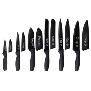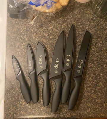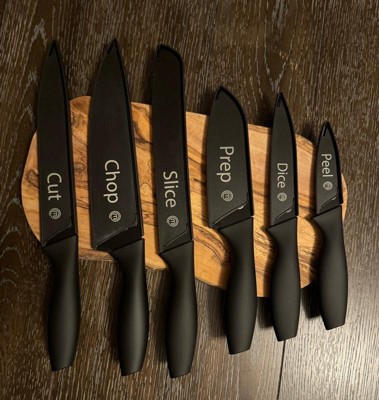 [This review was collected as part of a promotion.] I love this set of knives! They’re non-stick, sharp, durable and I like how they’re labeled what each knife is for. The covers are nice to keep put away safely.