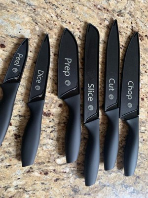 [This review was collected as part of a promotion.] This knife set is great. I like how they all have what usage to use the knives for. The handles are soft to grip. I like the Safety feature of the covers in the knives. They work good and wash easily.