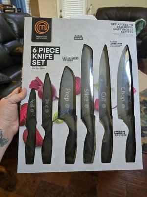 [This review was collected as part of a promotion.] I was gifted this product by Influenster and MasterChef in exchange for my honest review. I was very impressed with these knives! They were very sharp and felt right holding. I loved they all came with covers! I highly recommend these knives!