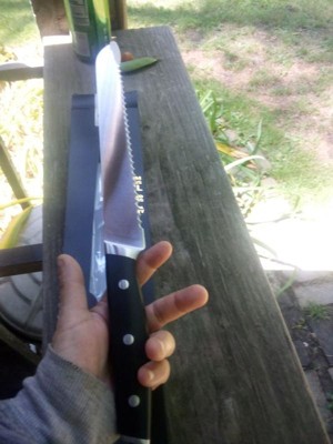 [This review was collected as part of a promotion.] Great quality knife! Sharp enough to cut loaf without squishing it. Can tell it’s good quality and will last for quite some time. Easy to use and clean.