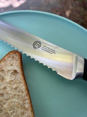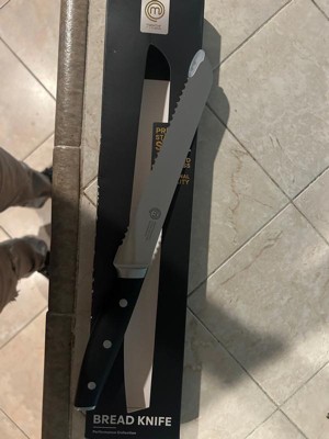 [This review was collected as part of a promotion.] The MasterChef bread knife is really terrific. It’s super sharp and easily cut the hefty pretzel bread. It’s really light and feels good in my hand. It feels was more expensive than it is. It’s premium stainless steel with 3 tines in the handle. Feels durable.
