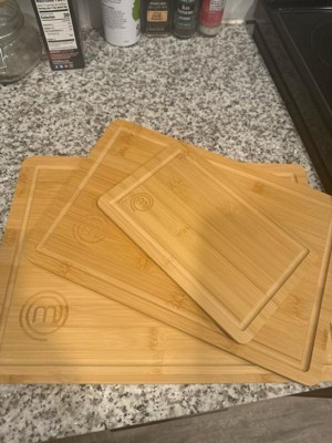 MasterChef 3pc Bamboo Cutting Board Set with Juice Grooves Essential Collection: Lightweight, Teak Brown, Hand Wash