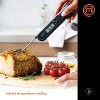 - High-quality digital thermometer with stainless-steel food-grade probe is safe to measure inside temperature of meat, jam, sauces, or even drinks—anything from extra hot to icy cold