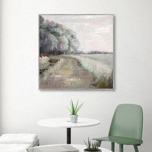 Embark on a journey of serene beauty with Spring Break by Studio Arts. This captivating landscape painting features a gravel road meandering towards the left, guiding the viewer through an untouched grayish-green field on the right. The scene exudes a sense of calm and natural elegance, inviting you to explore the tranquil countryside.