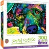 This MasterPieces 18" x 24" Dean Russo 300PC EZ Grip Puzzle with these adorable sad eyes hiding behind the cutest cold wet puppy nose. Dean Russo Art Studio has a sincere dedication to animal rescue, and has participated in charity auctions, donations and fund-raising events. Through inspiring messages and bright prints, Dean Russo's work is sure to brighten anyone's day. Each puzzle has extra large pieces for a fun and quick night of puzzling with the family or group of friends. The EZ-Grip technology used to make this puzzle offers larger puzzle pieces that snap together perfectly, without compromising image quality. To reduce its impact on our environment, the chipboard used in this puzzle is made of 100% recycled material.