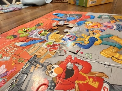 Get ready to rock with the Sesame Street Rock Stars Puzzle! Featuring your favorite Sesame Street characters in a lively band performance, this 48-piece puzzle showcases Oscar on drums, Grover on bass, Elmo and Zoe on vocals, Abby on keyboard, and Cookie Monster on guitar. With a finished size of 19" x 14", this puzzle provides ample space for preschoolers to assemble and enjoy the musical excitement. Crafted from recycled puzzle board, it's not only eco-friendly but also perfect for developing fine motor skills. Ideal for children aged 3 and above, this puzzle promises hours of entertainment and educational value for the whole family!