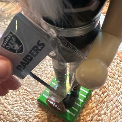 Celebrate your favorite team with this hand-crafted collectible nutcracker, a must-have for any Raiders fan. Officially licensed by the NFL, this nutcracker is a standout piece of Raiders decor, perfect for game day or the holiday season. Standing at 12 inches tall, it features the iconic team colors, a football, hair, gems, and a team flag, making it a showstopper in any collection of raider Christmas ornaments or nut cracker Christmas decor. Crafted from solid wood, this nutcracker boasts beautiful details, ensuring each piece is a unique keepsake. Ideal for decorative use, it complements any Raiders man cave decor or can be a festive addition to your raiders stocking or raiders Christmas hat display. Weighing just 1.1 pounds, it's easy to incorporate into your existing raiders merchandise collection. Whether you're looking to enhance your NFL Christmas ornaments collection or searching for the perfect raiders accessories, this nutcracker is a versatile piece that embodies team spirit. Its novelty shape and painted finish add a touch of elegance, making it a great gift for all ages. Embrace the spirit of the Raiders with this exquisite piece, perfect for any occasion.