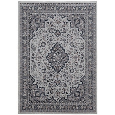 A: The rug has a flat pile height, making it suitable for most rooms.