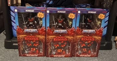 - With skin tones reflecting The Upside Down, Hordak is far from his usual grey tones but has his classic bat-adorned harness. He comes with a “flaming” Hellfire Sword and a bat