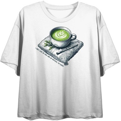 Matcha Teacup Green Is The New Women's Black Crew Neck Crop Top - 1 of 3