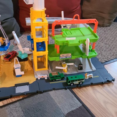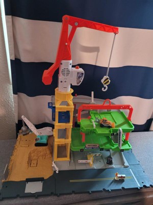 [This review was collected as part of a promotion.] Very fun playset. My kids have spent a lot of time playing with it. It has lots of different features to use like the platform you can hook to the rotating crane, which makes sounds and moves around, the portable toilet and the car lift. It has different levels, you can move gates, repair a road and play with the wrecking ball. Fun for one child or multiple. It’s a decent size and can connect to other Matchbox playsets which is a plus. This set took me a bit longer to put together and that was mainly because of all the stickers I had to attach. It comes apart easily and after much use I can set it up pretty fast now. Awesome set!