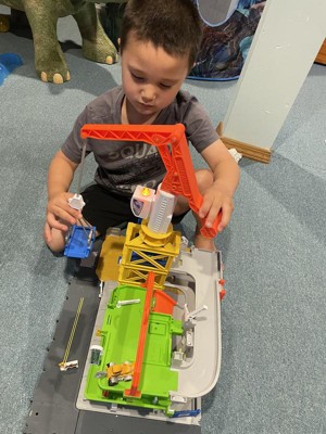 [This review was collected as part of a promotion.] This is my sons current favorite toy and he loves it so much! First, he loved helping to assemble it and put the stickers on. He loves that there are so many different things this toy can do. The crane is super fun and the noises are engaging. He thinks the potty is hilarious too! I bought more matchbox track and we’re going to connect them because he loves this so much.