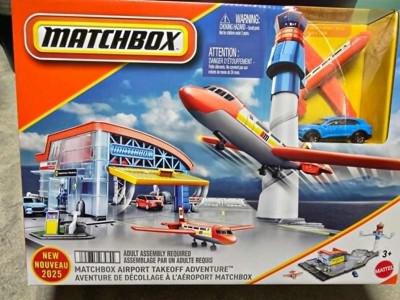 - The Matchbox Airport Takeoff Adventure Playset features an awesome control tower controller that allows kids to fly the plane like it flies in real life!