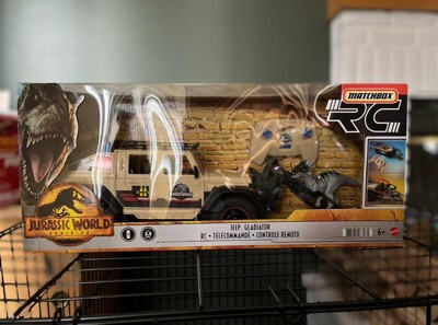 Matchbox RC Jurassic World Dominion Jeep Gladiator 6 inch Dracorex Dinosaur Figure Remote Control Toy Car with Auto-Capture Claw