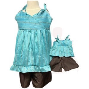 Product Name: Matching Girl And Doll Size 6 Brown Short Set With Blue Top