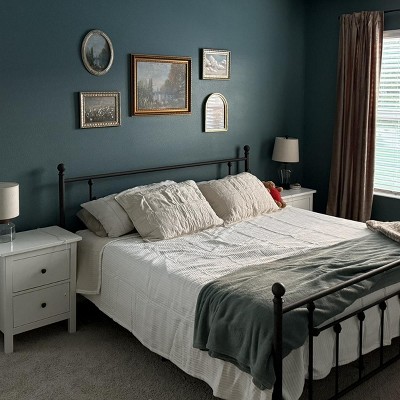 Beautiful teal color with white threads stripes. Super disappointed in the quality, the white threading picks and Pulls and the teal material snags. I do not recommend for a bed that will get any type a use. This would work for a spare room for looks only. Full/queen size fits a full bed like a bedspread so it is large and was intended to be used as the such. unfortunately it only lasted a couple weeks and the snags are just too difficult to try and fix. Only washed once after purchase and did wash well without wrinkles just snags horribly. It is not worth the money to last a few weeks