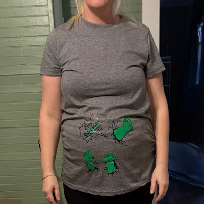 [This review was collected as part of a promotion.] I know how much my son loves super hero’s and especially hulk, I thought this would make the pregnancy a little more fun for him if I got this shirt. I am 5’6 170lbs and pregnant with twins. I am 19 weeks and got a size large, I could of gotten a medium but I want it to fit my entire pregnancy. It is very comfortable.