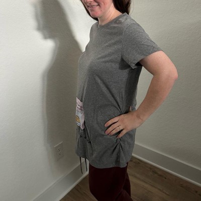 [This review was collected as part of a promotion.] This shirt is soooo cute! The graphic is just adorable and is smooth and adhered well. It is very comfortable with soft fabric. This will probably be my favorite maternity shirt. I usually wear large near the end of a pregnancy so it’s pretty baggy right now. It will be great for announcing pregnancy now and then wearing regularly in the third trimester!