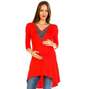 Product Name: Maternity Calla Embellished Tunic Top Red Small - White Mark
