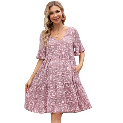 - Maternity Dress Summer Casual Flowy Midi Dress Baby Shower Photoshoot Apricot-BD-Medium