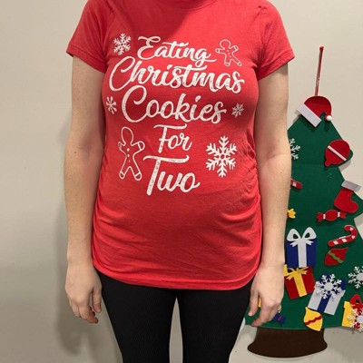 Maternity Eating Cookies for Two Pregnancy T shirt Cute Christmas Announcement - Crazy Dog Maternity T Shirt Gift For Christmas Red XL