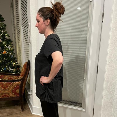 [This review was collected as part of a promotion.] This is such a cute design. However, I was sent the wrong size shirt so giving 4 stars for that reason. I was sent an XL shirt when I ordered size large. A large is already oversized on me until the third trimester so I am swimming in this XL. The fabric is soft and breathable and will be very comfortable for the final months of pregnancy.