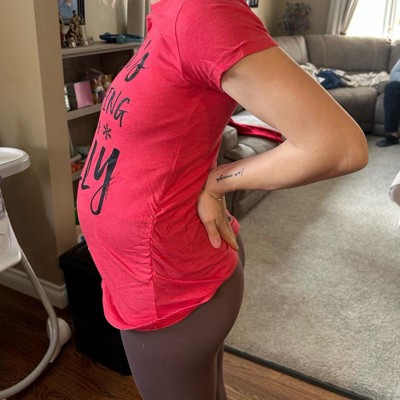 [This review was collected as part of a promotion.] This maternity Santas got nothing on this belly t-shirt looks really cute on! The fabric is super stretchy and soft, which is perfect for a growing baby belly! The length of the t-shirt is great too, and covers up all of my baby bump. Size is usually a size small, so i ordered a size small and it fit perfectly…making it true to size!