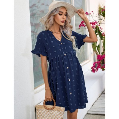 Elevate your maternity wardrobe with this dress's charming ruffle hemline that adds playful movement and feminine flair. The carefully placed decorative buttons create visual interest while maintaining the dress's effortless elegance. These thoughtful design elements transform a basic maternity dress into a stylish statement piece suitable for special occasions.