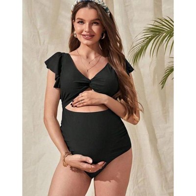 - Elegant Ruffle Sleeves: This one-piece maternity swimsuit features charming ruffle sleeves that add a feminine touch and enhance the overall design. The ruffles create a playful and stylish look, making this swimsuit perfect for expectant mothers who want to feel beautiful at the beach or pool.