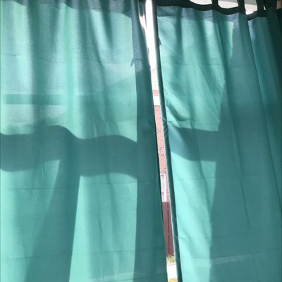 Very nice looking lighter weight (mineral) turquoise blue curtains. I like the Velcro, Looks beautiful under my patio cover and keeps the sun glare out. I live in a windy area and if needed I would try using a rope connecting the 3 panel bottoms as another Reviewer suggested. The only con is it has creases from when it was packed in the bag. I just got them so I am not able to rate on durability thus the 4 stars. All three panels arrived in perfect condition. Very happy with purchase.