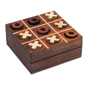 Play Tic-Tac-Toe on-the-go on this hand-carved Indian rosewood game set. It's the perfect game to keep on the coffee table for guests or on your office desk to challenge colleagues in a quick game. When not playing, the pieces fit perfectly inside the box.