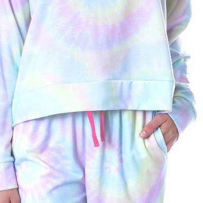 SHORTENED HOODIE STYLE TOP - This comfy soft jogger pajama set features the Barbie logo on a rainbow tie dye background. The pants also have an extra long waist tie (so you won't lose it in the wash). This hooded jogger pj set is both comfortable and functional, it is made of a polyester spandex blend that allows it to wear well but also be stretchy and comfortable. The top has a shortened oversized hoodie look with an extra soft hood and the the pants are joggers with two extra deep pockets hidden in the seam to carry your phone or keys. Any fan of Barbie will love relaxing in this fun set
