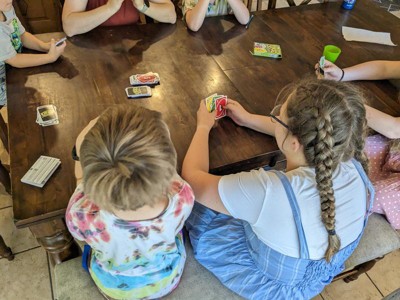 [This review was collected as part of a promotion.] We have all types of Uno games so decided to try this when we had a friend over for a sleepover. We all had different ideas of the "house rules", we started outside with physical challenges but it rained so we came inside and did the silly suggestions in the directions. We all enjoyed the new spin on this classic game.