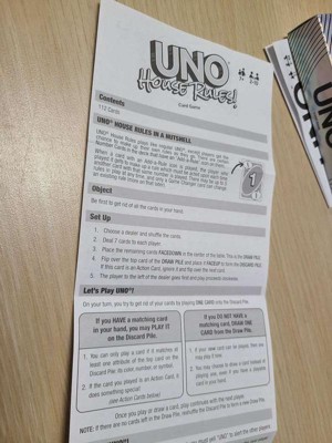 [This review was collected as part of a promotion.] UNO house rules is a truly family oriented game. The rules are simple-have fun and be creative. It took us a couple of "do overs" to remember the house rules we created but that didn't take away from the fun!