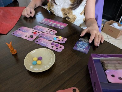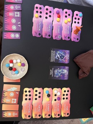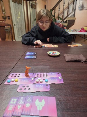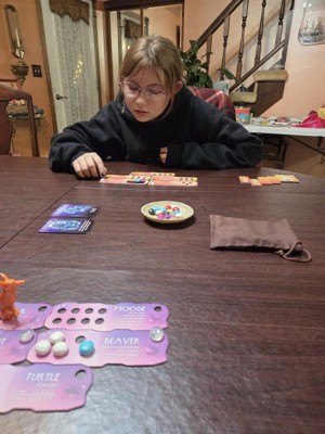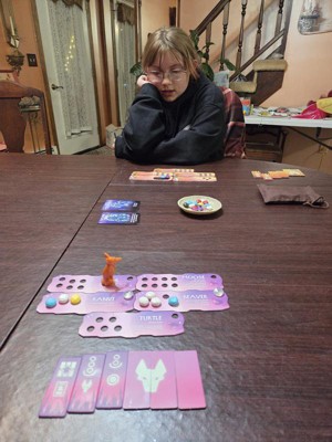 [This review was collected as part of a promotion.] This game was a very simple to learn and play. You are trying to collect colored stones to add to your personal animal boards. Each board has a combination you are trying to make. Slightly strategic in that you have certain cards that you use at your own discretion to decide how many stones you draw, you have to both not have too many or too few. Add in a trickster coyote to prevent your opponent from playing on a card and it quickly becomes a game of wits to finish! With more animal boards than you play at one time, you can change the cards you play to several combinations but they instructions so give you a couple combinations to start. We played several rounds with the first example combination the first day and never got bored. We then switched it up and it plays the same and never got boring for us. The game itself doesn't take long to play at all so it can be a quick way to spend time or play several rounds for a family game night. I personally think this would be a great classroom inside recess addition!