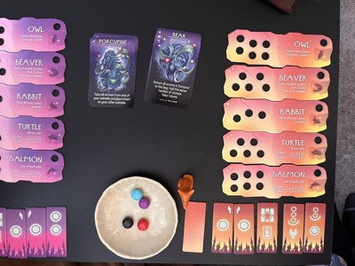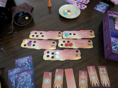 [This review was collected as part of a promotion.] Very excited to get this game- it is a wonderful upgrade to the original Spirits of the Wild game...introduces new spirit powers with updated colorful artwork and stones. Nice addition to game night!!