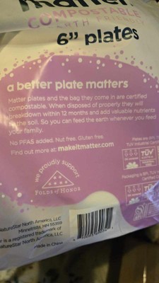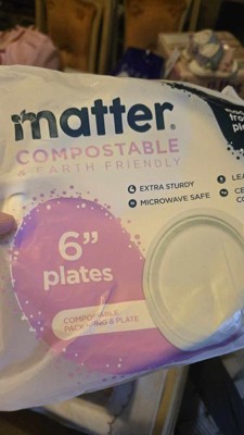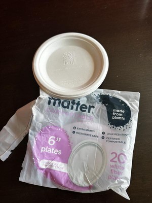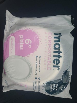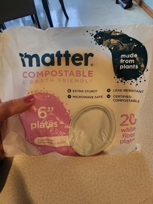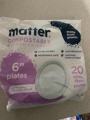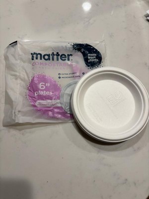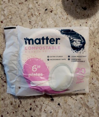 Product contains compostable elements. Packaging contains compostable elements. Matter 6” White Dessert Plates powered by Nature Star are compostable, and made using natural, renewable and sustainable fibers. Matter 6" plates, when disposed of properly, will compost in soil in a matter of months. Matter plates are durable, leak-resistant, microwave, and freezer safe. A better plate matters.