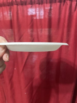 These small compostable plates are great for picnics. We kept them in the car for when we needed a small plate on the go. They stood up to a barbecue meal and vegetables. They were heavy duty and perfect for the job.