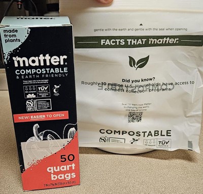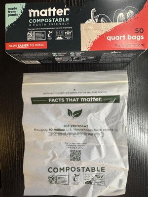 - Matter brand Quart Storage Bags are home and commercially compostable (Facilities may not exist in your area)