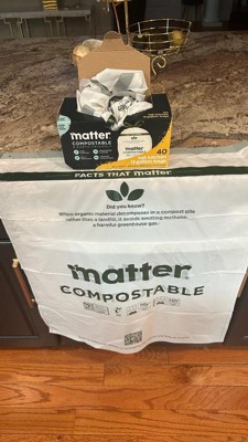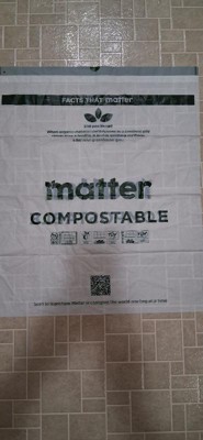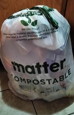 Product contains compostable elements. Matter Kitchen Bags powered by revolutionary NatureStar technology, are compostable. Matter brand Kitchen Bags are made using sustainable, natural, and renewable resins that when disposed of properly, will compost in soil in a matter of months. Matter brand Kitchen Bags are durable and strong, leak-resistant, and refrigerator and freezer safe. The entire lifecycle of Matter brand Kitchen Bags minimize waste, including adding valuable nutrients back into the earth. From nature, back to nature.