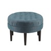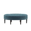 Prop up your feet and relax with the Mathew Surfboard Tufted Ottoman. This upholstered oval-shaped ottoman features a button tufted top that adds an elegant modern look. Solid wood straight legs with dark finish create a rich and striking contrast. Use this tufted ottoman as the perfect centerpiece in your living room to complete your decor. Only leg assembly is required. Spot clean or professional steam clean.