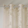 Bring a touch of paradise into your home, with our Maui Palm Leaf Sheer Window Curtain. This panel combines an intricate burnout palm leaf design on a lightweight natural sheer, creating soft dimension for a relaxed and updated look. This window panel is also OEKO-TEX certified, meaning it does not contain any harmful substances or chemicals, ensuring quality comfort and wellness. The antique silver grommet top finish makes this window curtain easier to hang, open, and close throughout the day. Fits up to a 1.25" diameter rod.