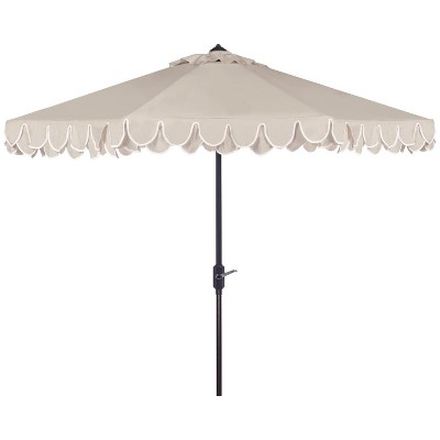 Maui Single Scallop Striped 9Ft Crank Push Button Tilt Umbrella - PAT8011 - Beige/White - Safavieh