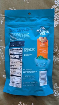 [This review was collected as part of a promotion.] The honey roasted macadamia nuts from Mauna Lao taste so good! A slight hint of honey, roasted to perfection, and just a bit of saltiness. The bag is very convenient, has a zipper across the top so I can reseal it for freshness They are comparable in price to other flavors of the Mauna Lao line of snacks.