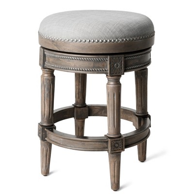 The 26" Maven Lane Adrien Counter Height Stool offers a refined balance of comfort and craftsmanship. Its upholstered saddle seat is softly contoured and generously cushioned with high-density foam for lasting support. Subtle nailhead trim adds tailored charm, while the solid kiln-dried hardwood frame ensures durability through daily use. This space-saving, backless wooden stool tucks neatly under kitchen counters and islands—elevating your home without overwhelming your space.
