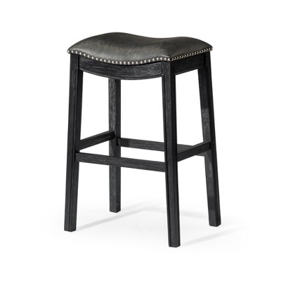 Sophia 31" Backless Faux Leather Bar Stool Subtle elegance. Functional design. The Sophia Bar Stool blends timeless elegance with everyday functionality. Featuring a six-panel stitched vegan leather seat, nailhead trim, and a cushioned backless design, this wooden bar stool offers comfort and refined style. Built from solid hardwood with a reinforced footrest, it’s durable, versatile, and perfect for kitchen islands, dining spaces, or home bars. 31" H x 18" W x 20" L 14.5lbs Distance seat to floor: 31" Seat 18" W x12.7" D 2.75" cushion thickness Supports up to 300 lbs