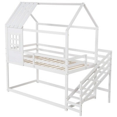 - Space-saving: Assembled bed measures 99.5” L x 42.5” W x 50” H (including stairs), great for low ceilings and safe for younger ages