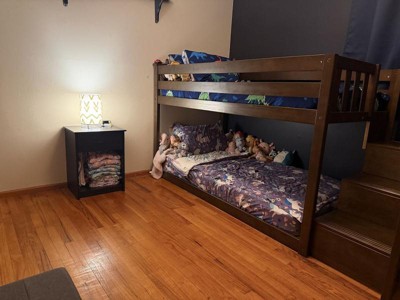 [This review was collected as part of a promotion.] My 5 year old twin boys absolutely love their new bunk bed!! It looks great, the staircase is safe, and leaves plenty of head space on bottom & top bunk. We have 5 Little Monkey twin mattresses and they fit perfectly. My boys have slept amazing since getting this bed!