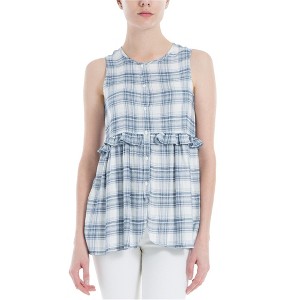 Embrace casual elegance with the Max Studio London Women's Ruffled Button Up Shirt. This button-down shirt, presented by Max Studio London, is more than just clothing – it's a reflection of modern style and sophistication. Crafted with care and attention to detail, this classic fit sleeveless shirt features a ruffled detail under the chest that adds a touch of femininity. The plaid pattern throughout lends a timeless charm, while the full button-down placket ensures a polished look for any occasion.
